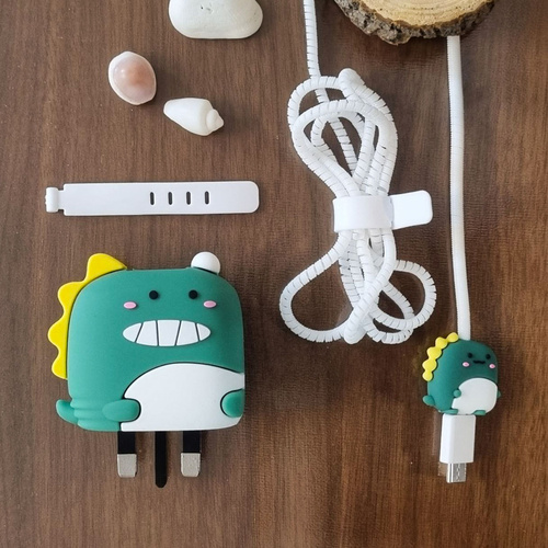 کاور شارژر و کابل سامسونگ طرح دایناسور مجموعه 4 عددی